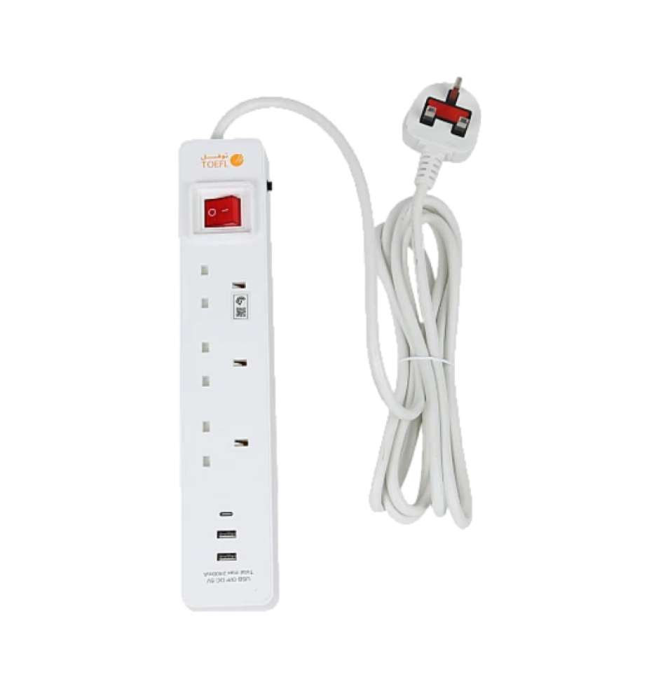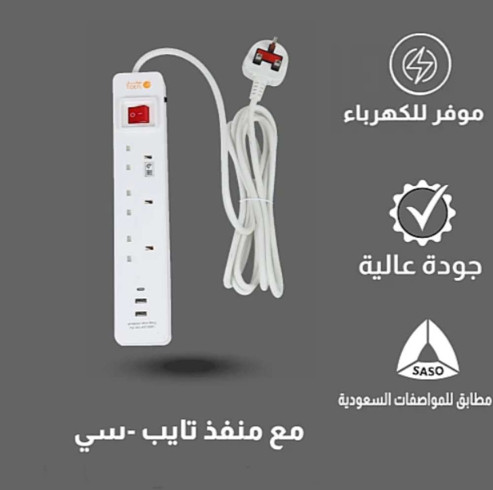 توصيلة 3 مداخل افياش مع مدخلين يو اس بي + مدخل تايب سي طول السلك (حسب اختيارك) من براند توفل
